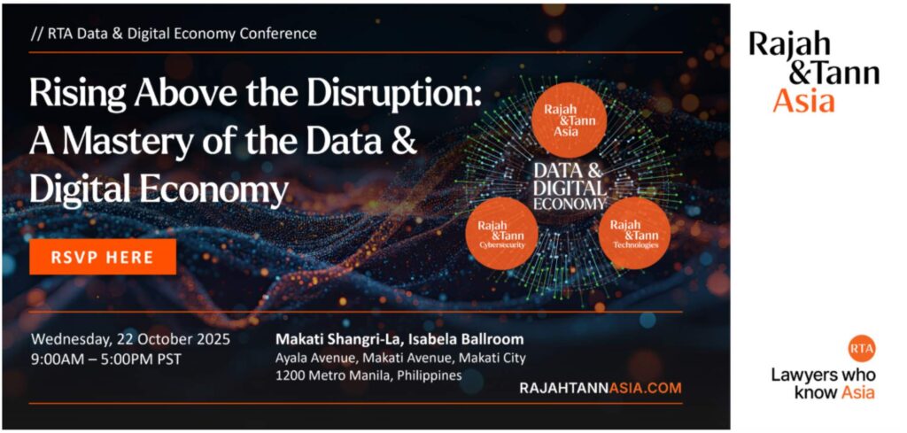 On 22 October 2025, Rajah & Tann Asia’s (“RTA“) Data & Digital Economy (“DDE“) Regional Sector Group organised its third annual DDE Conference with the theme “Rising Above the Disruption: A Mastery of the Data & Digital Economy” in the Philippines.